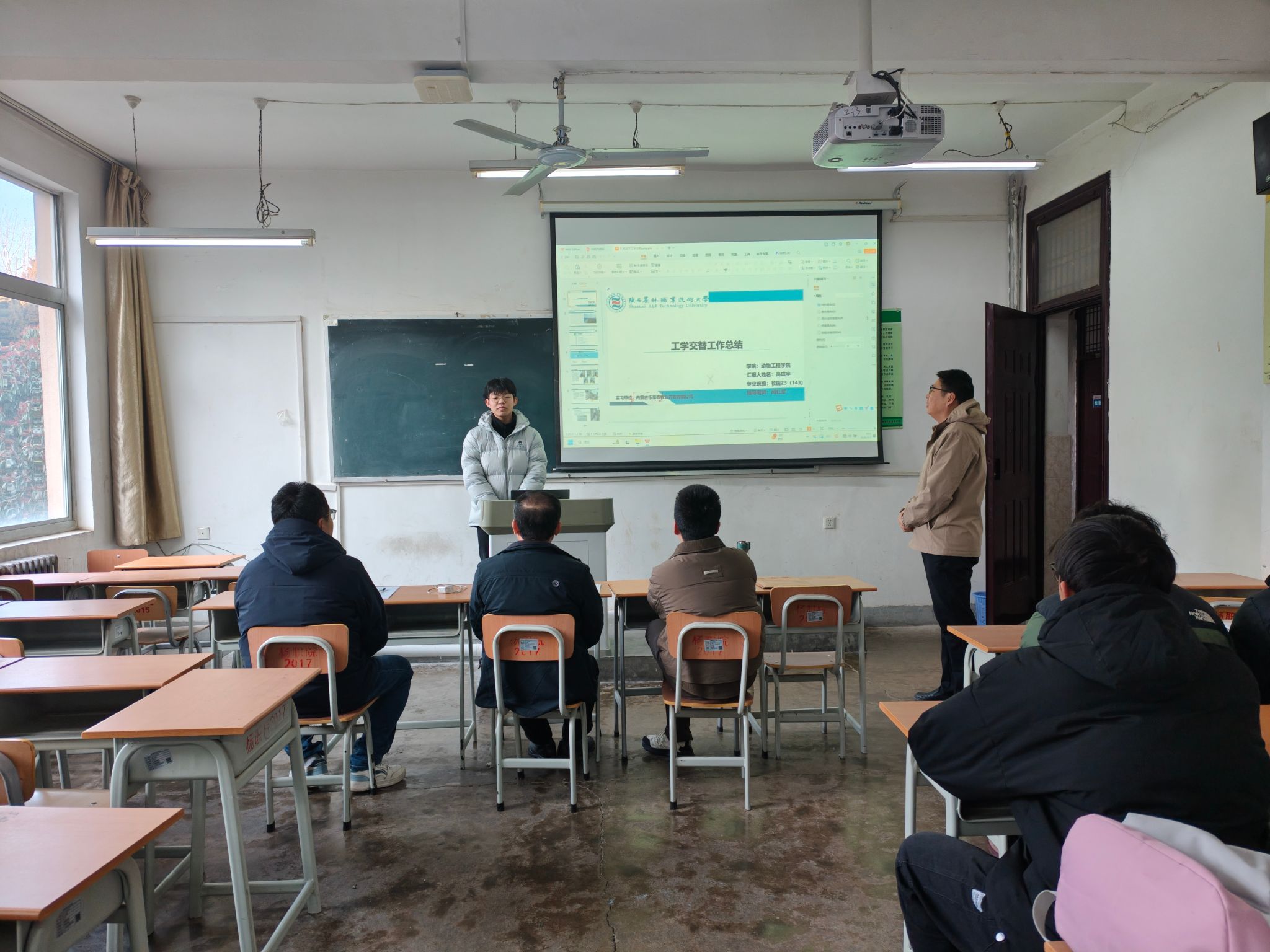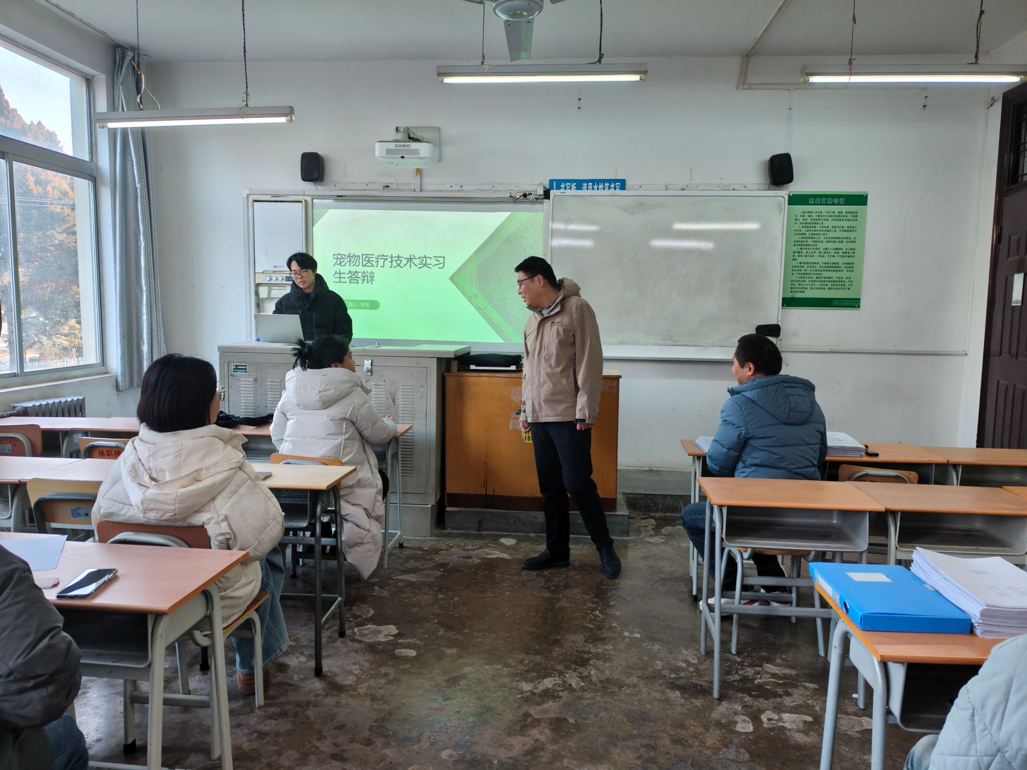 2023级学生工学交替及综合实习共有22个班级总计786人参加,其中包含1个联合培养西藏班。参加本次校外实践性教学的学生分别在养猪与猪病防控、牛羊生产与疾病防控、养禽与禽病防控、宠物医疗技术及宠物养护与驯导等五个方向进行实习。交流答辩开始前,学生按照通知要求提前将校外实习期间的实习报告、工作照片及视频、三方协议和总结报告等材料提交给指导老师,再分别以幻灯片展示和互动问答的形式进行总结交流答辩。