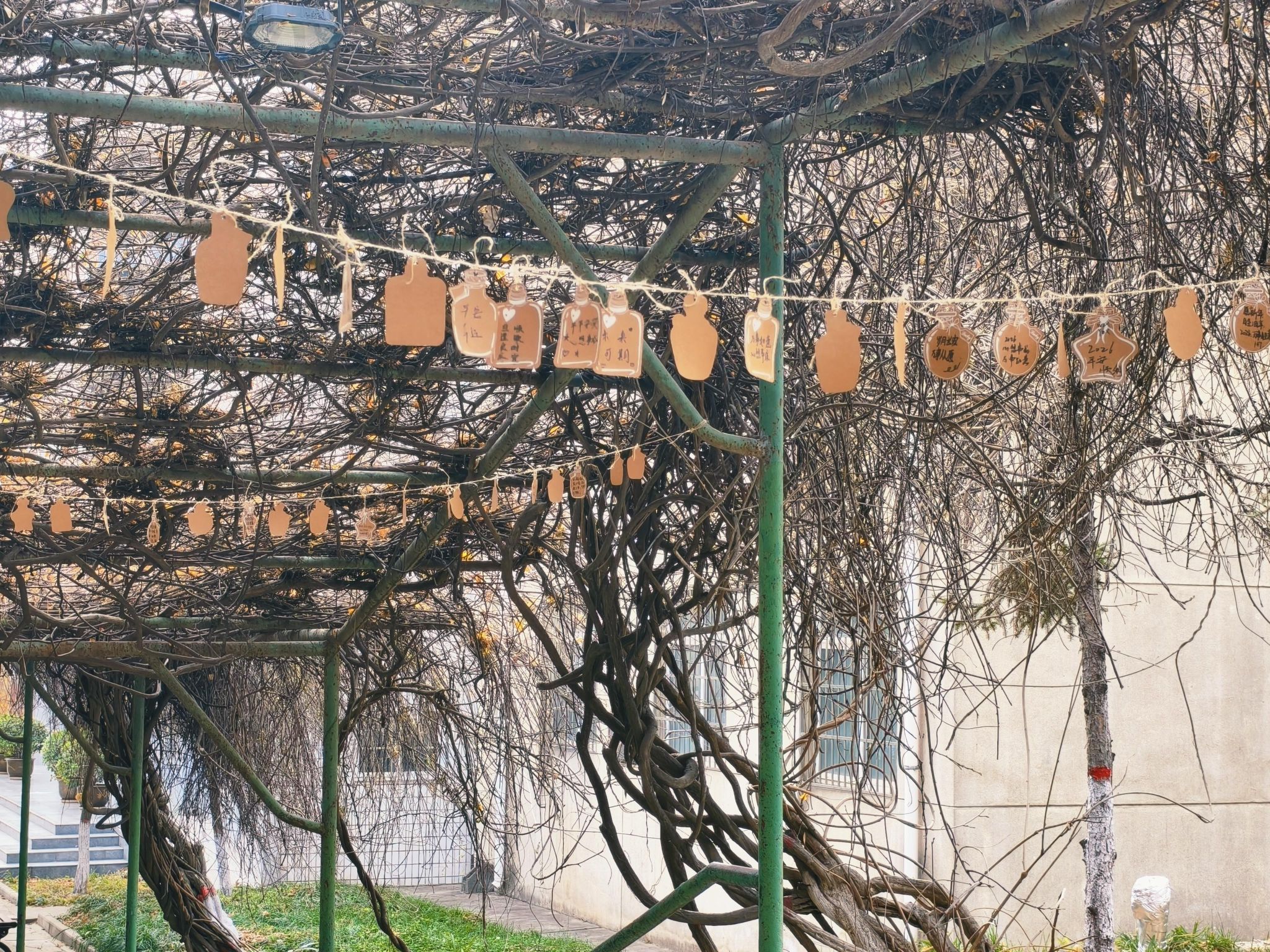 一根长长的麻绳,精心悬挂在校园的林荫道旁。同学们停下匆匆的脚步,静下心来,用特色的心愿牌与马克笔将藏在心底的期许一一落笔。是关于学业的精进,盼着考试顺利、绩点攀升;是关于生活的顺遂,愿家人安康、朋友常伴;或是关于自己的小目标,期待新的一年能解锁新技能、遇见更好的自己。