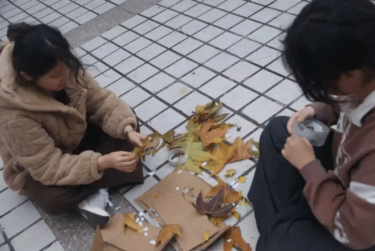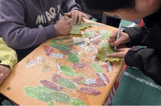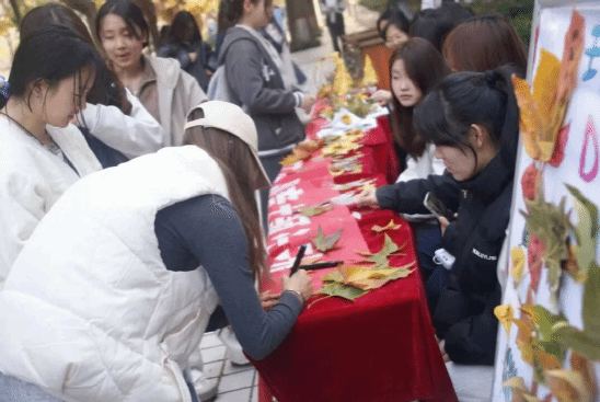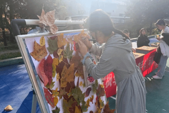 活动现场处处洋溢着秋意与热情。同学们化身“自然艺术家”,将收集的红枫、黄枫化作灵感素材,裁剪、粘贴、拼接间,普通的落叶变成了精致的物品、灵动的摆件;环保展板前更是热闹非凡,大家在树叶上写下对校园的祝福、对环保的承诺,一片片承载心意的树叶拼凑出最美的校园风景。用实际行动践行环保理念,带动更多同学加入“变废为宝”的行列。