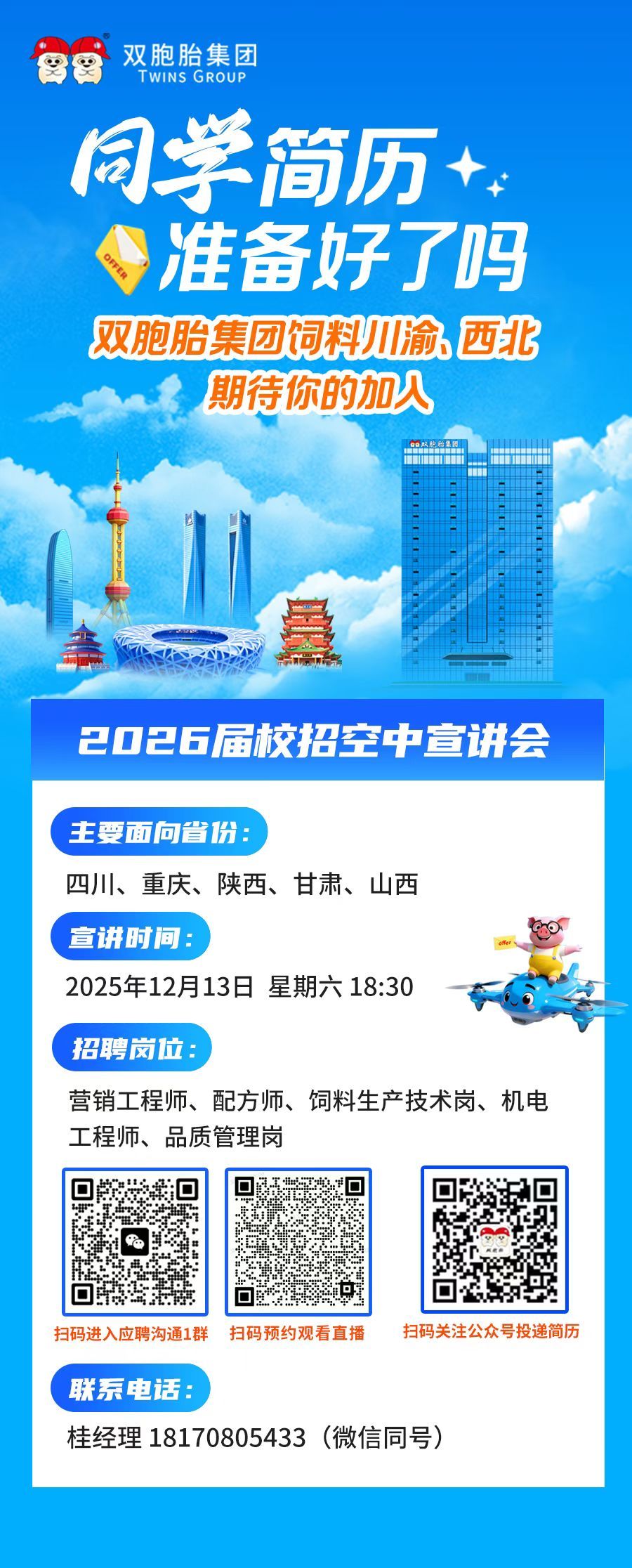 同学!简历准备好了吗?双胞胎集团饲料川渝、西北期待你的加入