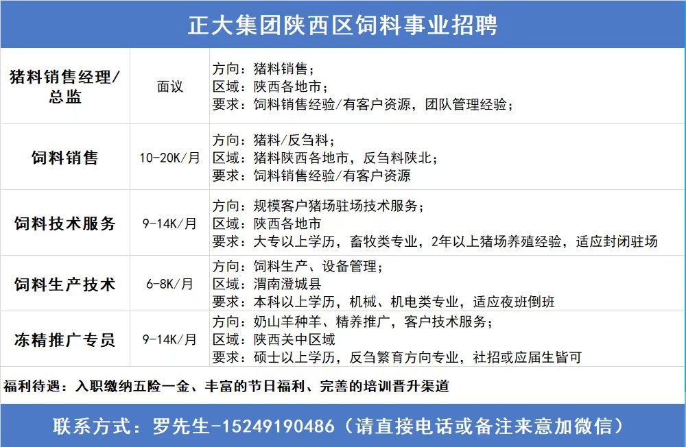 正大集团陕西区饲料事业招聘