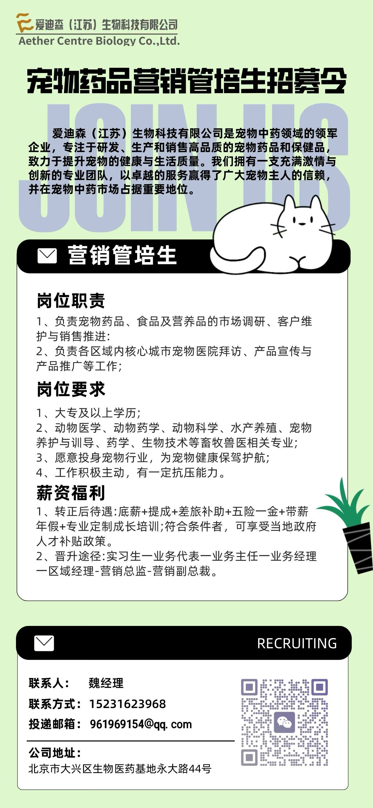 爱迪森(江苏)生物科技有限公司招聘