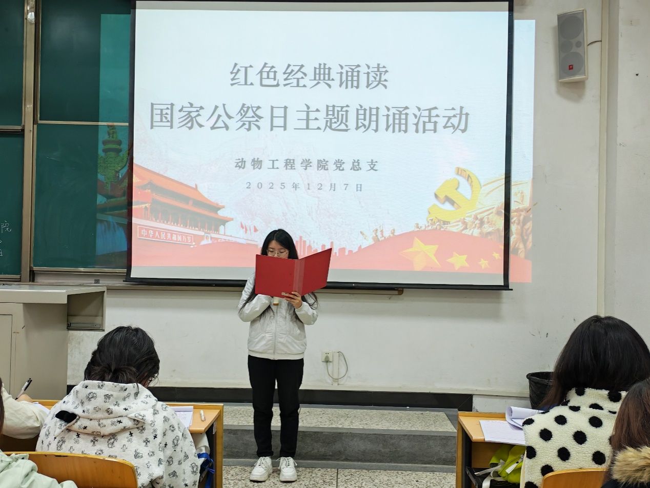 为进一步激发积极分子爱国爱党之情,12月7日,动物工程学院党总支在北校行知楼118教室和121教室举行“愿吾辈之青春 捍卫盛世之中华”—国家公祭日诵读活动,参加此次活动有今年冬季党课培训班学生240余人参加