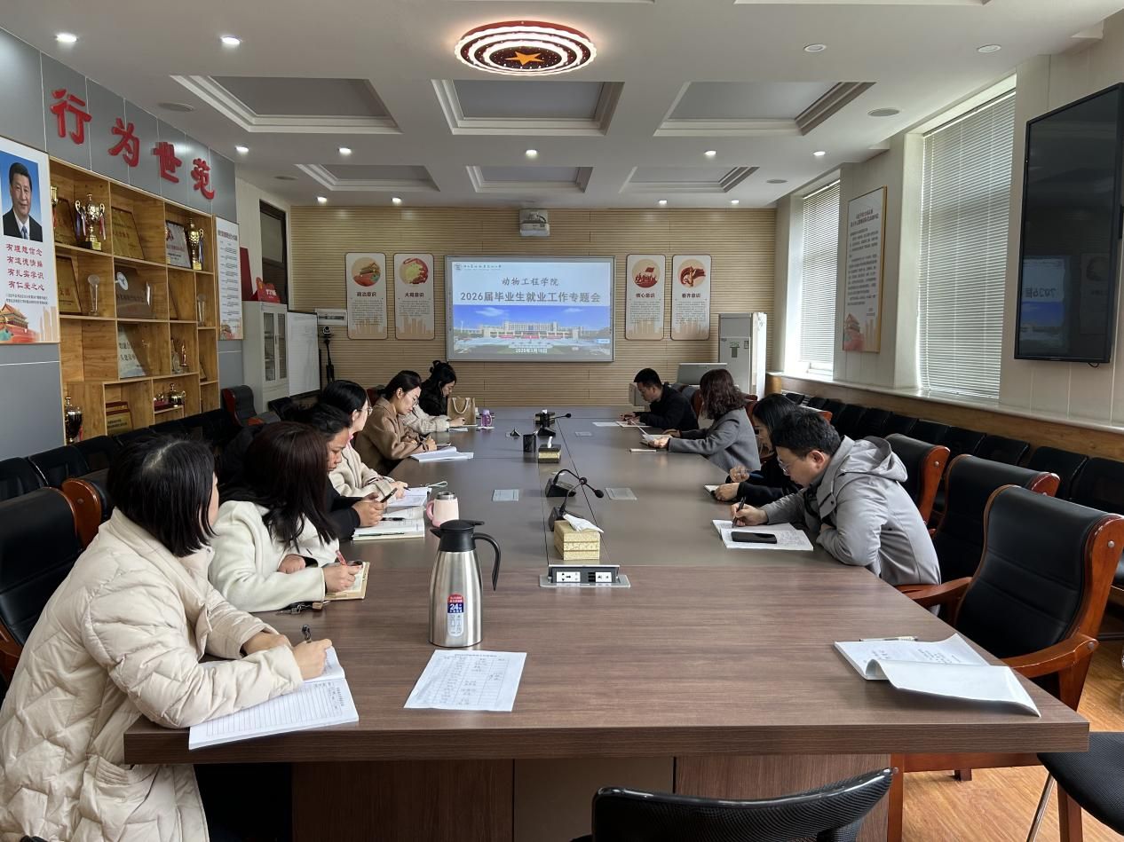 为进一步做好2026届毕业生就业工作,3月16日,动物工程学院召开2026届毕业生就业工作专题会议。会议由学工办主任杨丽军主持,全体毕业班辅导员、班主任参加会议。