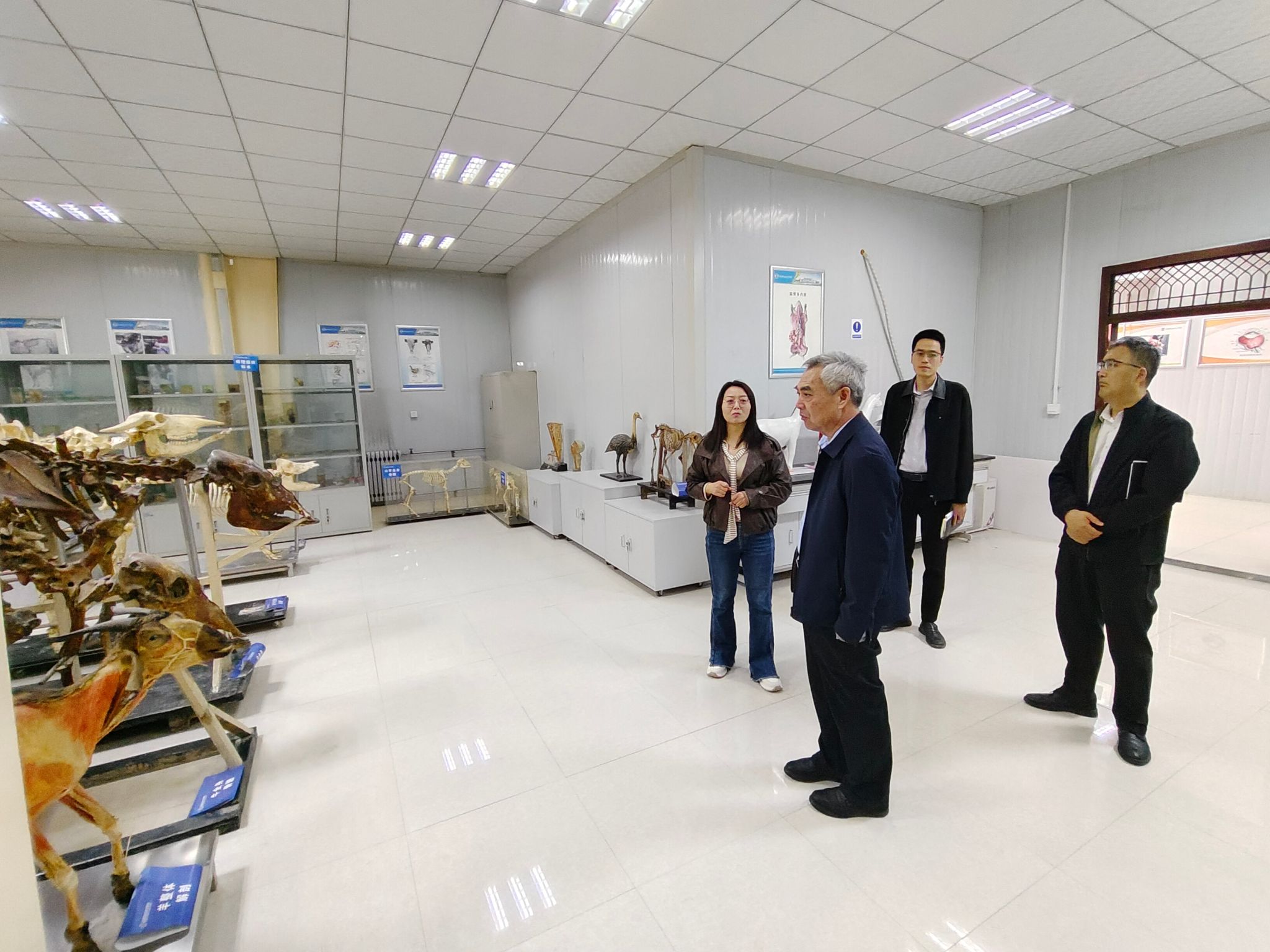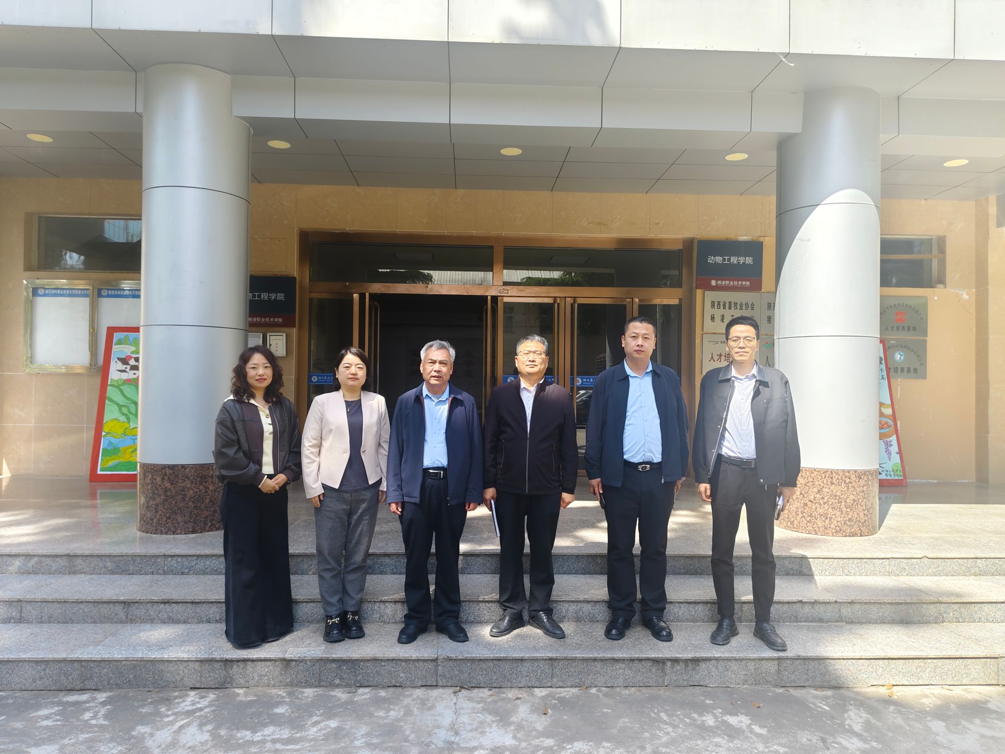 座谈会结束后,参会人员在林和楼门口合影留念,然后共同参观了动物工程学院实训中心,进一步了解了学院的教学设施和实训条件,为双方未来的合作奠定了基础。