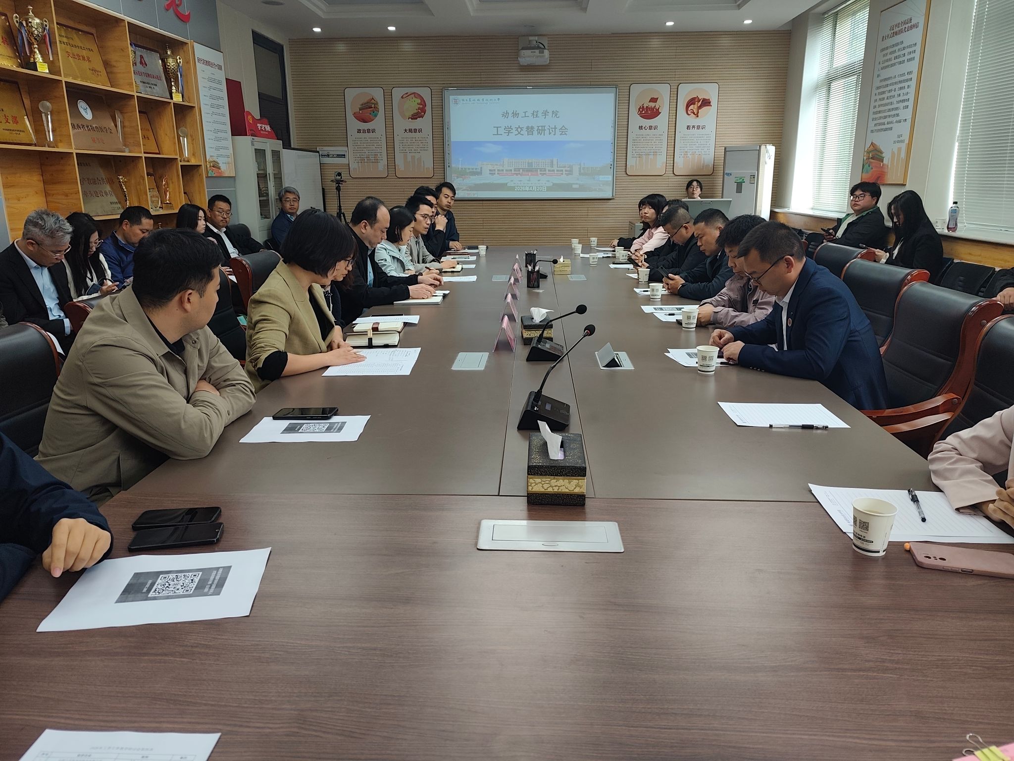 工学交替教学研讨会上,学院党总支副书记刘钊对与会企业的到来表示热烈欢迎,并感谢各企业长期以来对我院人才培养、产教融合等方面工作的支持,之后向与会企业介绍了学校和学院概况,他指出工学交替是职业教育的核心路径,校企合作是育人成才的关键支撑,并希望各家企业能一如既往地支持学院发展,在订单培养、实训基地、技术攻关等方面深化合作,共同为现代畜牧业培养更多“懂技术、爱动物、能吃苦”的高素质人才。院长助理贾燕青介绍了2024级学生工学交替教学的基本情况,强调了工学交替教学和学生实习管理方面的注意事项。随后,教研室主任、专业带头人与企业人员就后续工学交替教学活动的实施路径进行交流研讨。