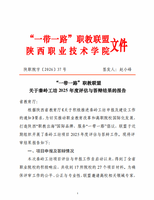 近日,“一带一路” 职教联盟发布《关于秦岭工坊2025年度评估与答辩结果的公告》(陕职院字〔2026〕37 号),我院前期培育的“中老现代畜牧秦岭工坊”项目顺利通过评审,正式获批立项,为我院服务“一带一路”职教合作、推进“职教出海”新添标志性成果。