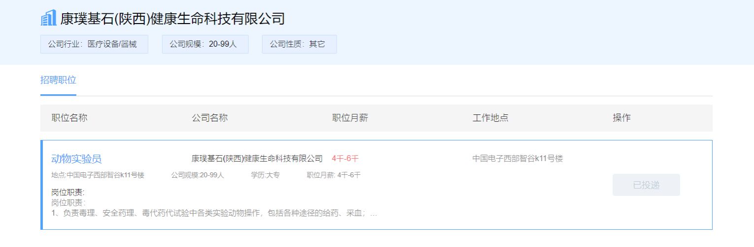 康璞基石(陕西)健康生命科技有限公司招聘实验员